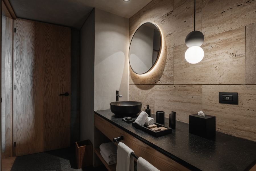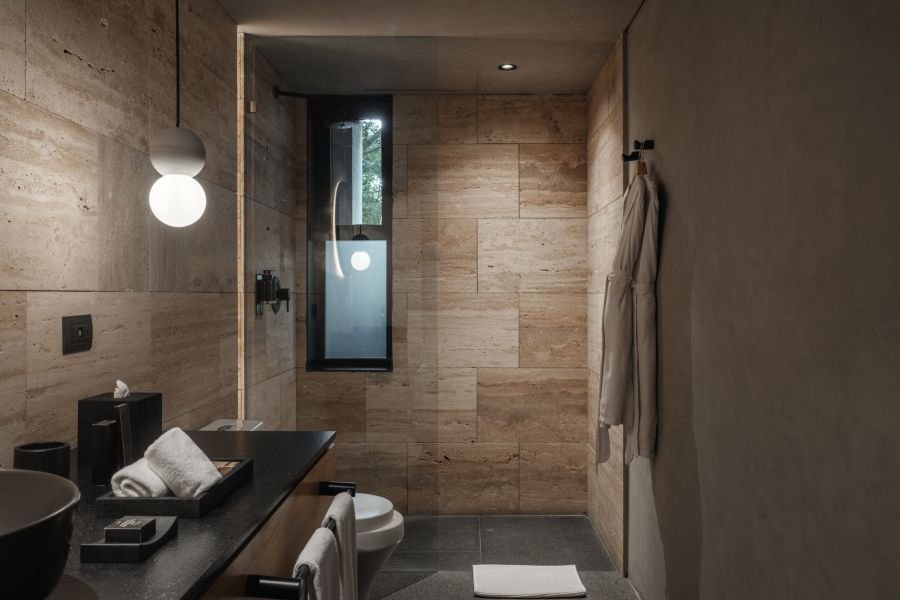 This spacious room features a king-size bed with premium linens for restful nights, complemented by a sofa for relaxing or reading. A desk provides convenience for those balancing work and leisure during their stay. The highlight is the private terrace, furnished with a table and chairs — perfect for enjoying morning coffee, an afternoon pause, or evening drinks with views of Roma Norte. The room also includes a modern bathroom with shower, fresh towels, and amenities to ensure a seamless stay.